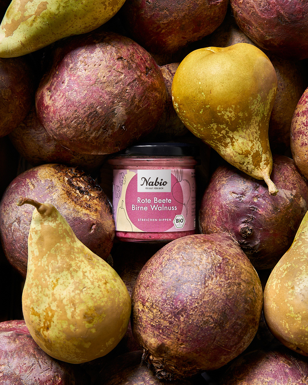Kräftige Rote Beete trifft auf süße Birne und knackige Walnuss – unser cremiger Aufstrich ist eine intensiv schmackhafte und erfrischend leckere Kreation! Und die natürliche Farbe der Roten Beete ist einfach ein Highlight auf dem Tisch!